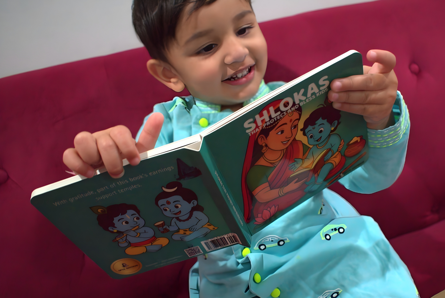 Our children’s books are meant to strengthen the bond between you and your child. A parent’s voice makes shlokas feel safe, familiar, and deeply loved — memories that stay for life.